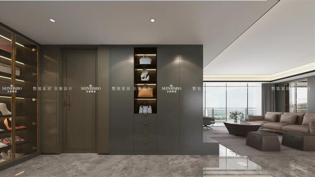 入戶采用的是煙熏色,搭配金屬把手,配合透明的鞋柜,整個(gè)空間看起來(lái)簡(jiǎn)約時(shí)尚大氣,男主人表示這就是他想象中的樣子。