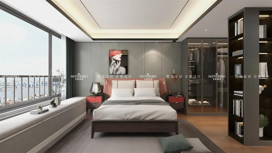 主臥的床是意式輕奢時(shí)尚與東方雅韻極致融合,沒(méi)有半點(diǎn)突兀和乖張。,意大利最出名的便是它的工藝與設(shè)計(jì),時(shí)尚的莫蘭迪色系、輕奢金屬的運(yùn)用,體現(xiàn)嫻熟的意式家具設(shè)計(jì)底蘊(yùn),兩者之間融合的相得益彰。
